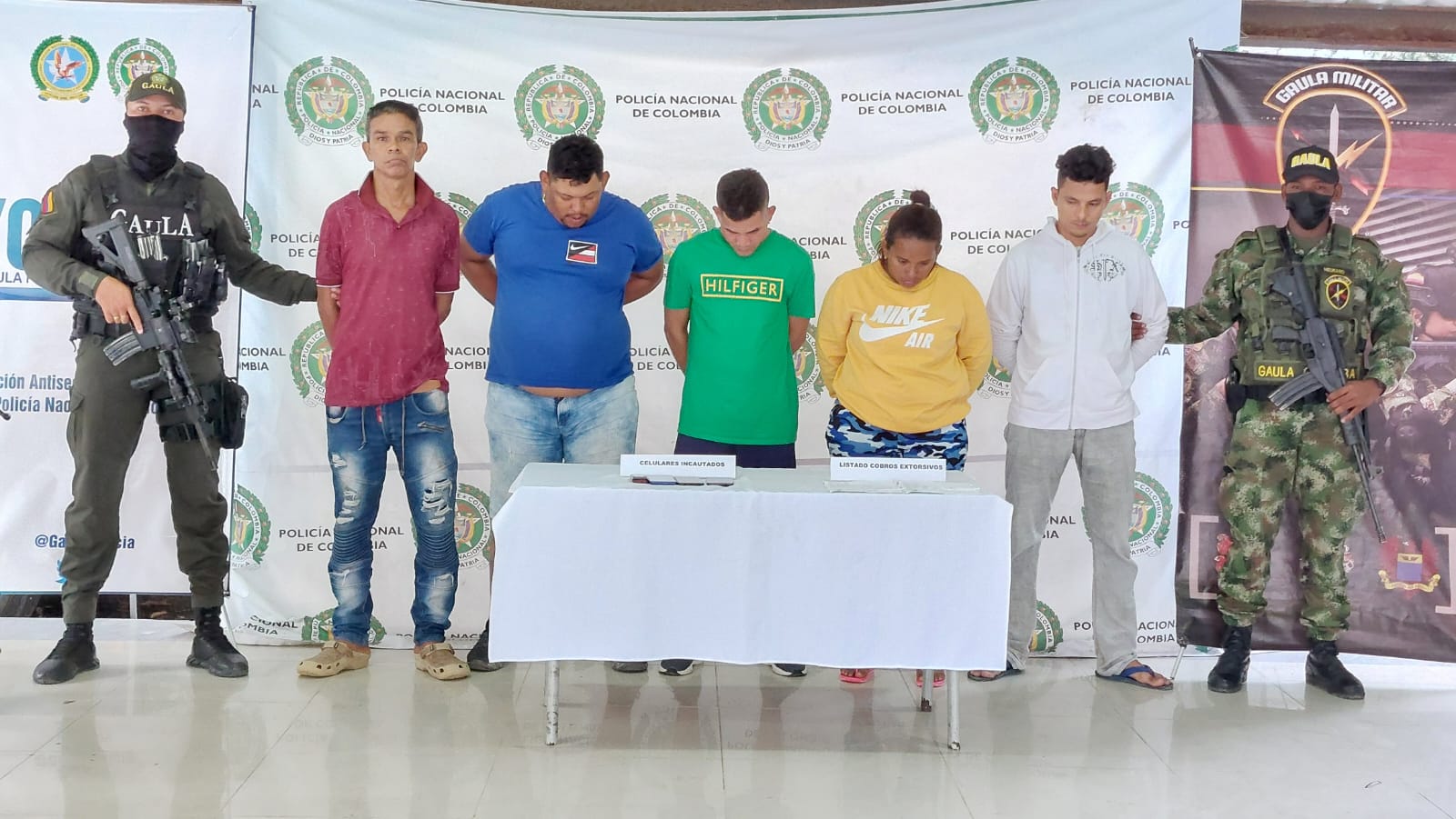 En las últimas horas se registró la captura de cinco personas mediante orden judicial por los delitos de concierto para delinquir agravado y extorsión agravada, pertenecientes al Grupo Armado Organizado Clan del Golfo, quienes venían realizando cobros extorsivos a comerciantes y transportadores de la margen derecha de la ciudad de Montería.