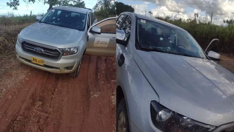 El vehículo que estaría en temas de exploración, recibió varios impactos de bala en la vía que conduce al corregimiento de Santa Fe Las Claras.