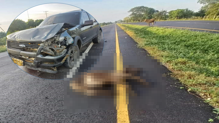 Fue tan fuerte el impacto que, el ternero murió al instante y el vehículo quedó con grandes daños materiales.
