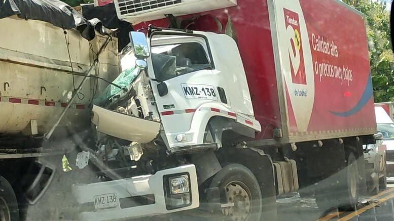 Los hechos se presentaron después del puente San Jorge, donde un camión del D1 chocó de frente contra una tractomula y posteriormente, el conductor de una camioneta impactó la parte trasera del vehículo de la cadena de tiendas.