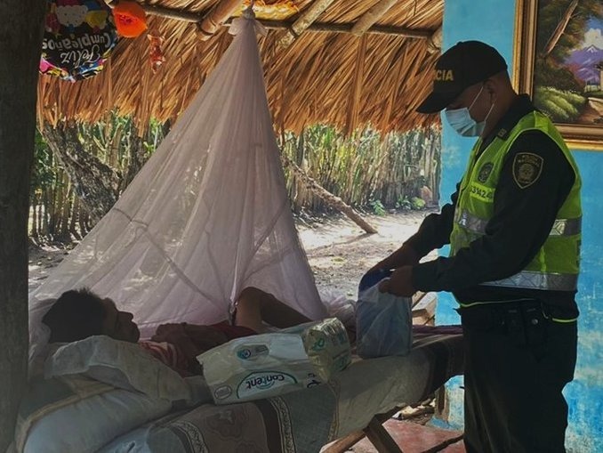 Es así como, el señor patrullero Yair Antonio Baena Velásquez, Gestor de Participación Ciudadana del municipio de Chimá, con apoyo de unidades del Modelo Nacional de Vigilancia Comunitaria por Cuadrantes, realizó la entrega de ayudas humanitarias a familias que se encuentran en condiciones vulnerables, en esta región del bajo Sinú cordobés.
