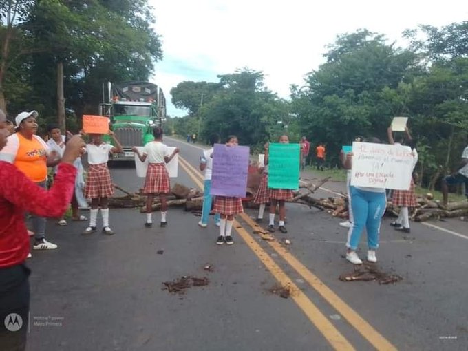 Los manifestantes bloquearon con palos y piedras la vía que comunica a los departamentos Sucre y Bolívar exigiendo el mantenimiento a la vía de acceso al sector y mejoras en el Centro Educativo.