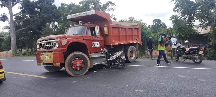 Una motocicleta chocó contra un volco en horas del mediodía del jueves 28 de enero en la vía que de San Pelayo conduce a Cereté, Córdoba.