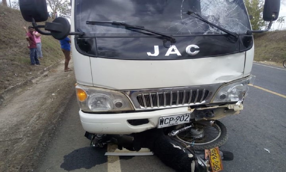 Los hechos sucedieron a la altura del sector ‘Cazuela’ de Cereté, donde el conductor de una motocicleta chocó de frente contra un camión.
