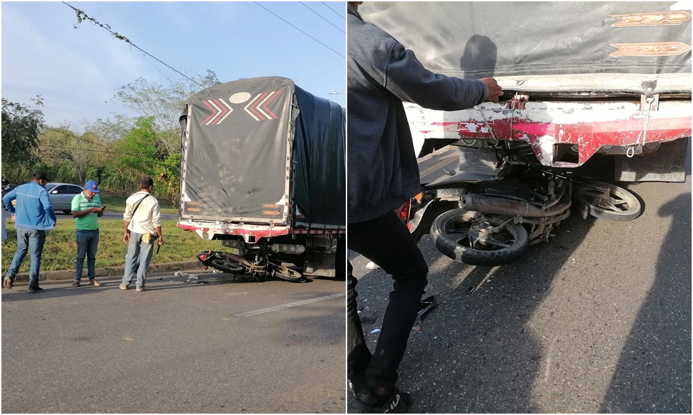 Hace pocos minutos se registró un aparatoso accidente de tránsito en la vía Ciénaga de Oro – Cereté, donde un motociclista resultó gravemente herido tras chocar contra un camión.