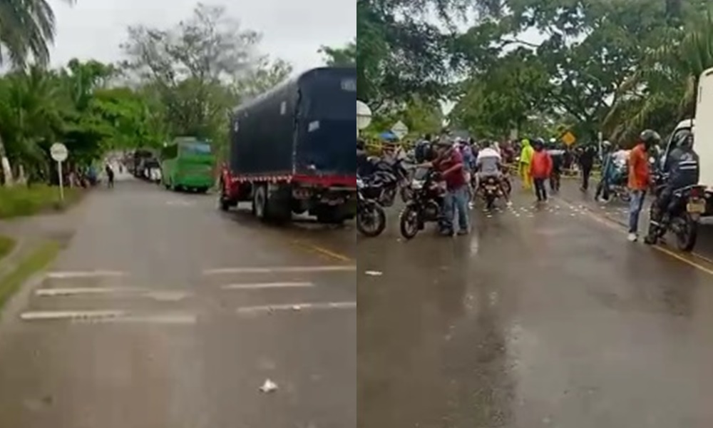 Es de resaltar que, hay un gran trancón vehicular en la zona a causa del bloqueo en la carretera.