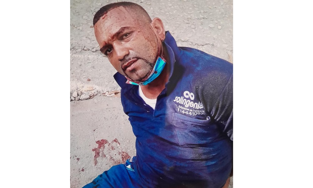 El sujeto al que aún se le desconoce la identidad, vestía un suéter con un jean, tenía la cara sucia de sangre, estaba esposado y sentado en la calle.