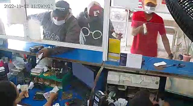 En las cámaras de seguridad del establecimiento se logra observar que uno de los criminales entró al cubículo y recogió parte del dinero.