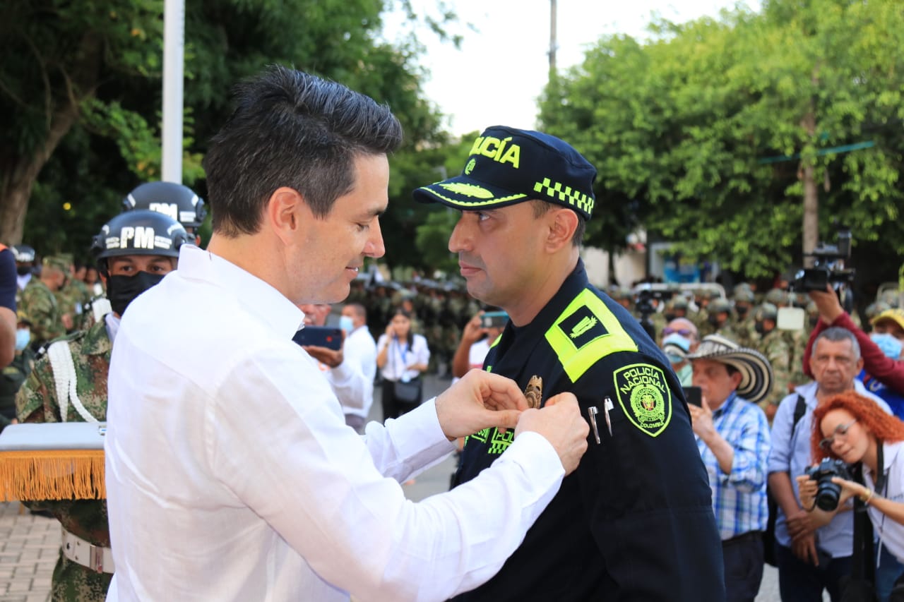 El alcalde Carlos Ordosgoitia Sanin destacó los avances en materia de seguridad alcanzados por el comandante de la Policía Metropolitana saliente, coronel Wilson Montenegro, quien estuvo en el cargo desde enero del 2020.