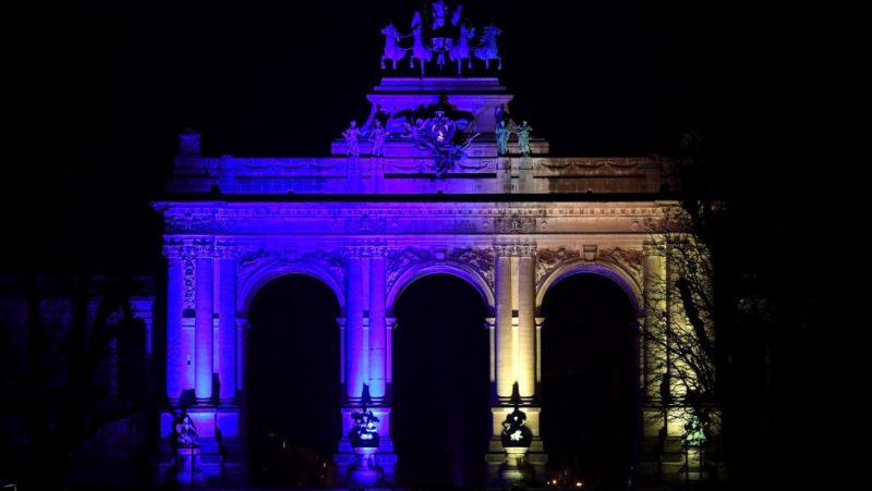 En Bruselas, el parque del Cincuentenario se iluminó durante una cumbre de emergencia de la Unión Europea (Jhon Thys/ AFP vía Getty Images)