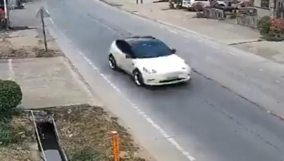 En el video que se conoció hoy, se ve cómo el vehículo estaba próximo a estacionar cuando de repente dio marcha atrás y comenzó a conducirse solo por la ruta. En primera instancia esquivó una moto que iba justo por delante, sin embargo con el pasar de los segundos y a medida que aumentaba la velocidad hasta alcanzar una los casi 200 kilómetros por hora embistió un par de motos y bicicletas hasta que se estrelló contra un local de alimentos.