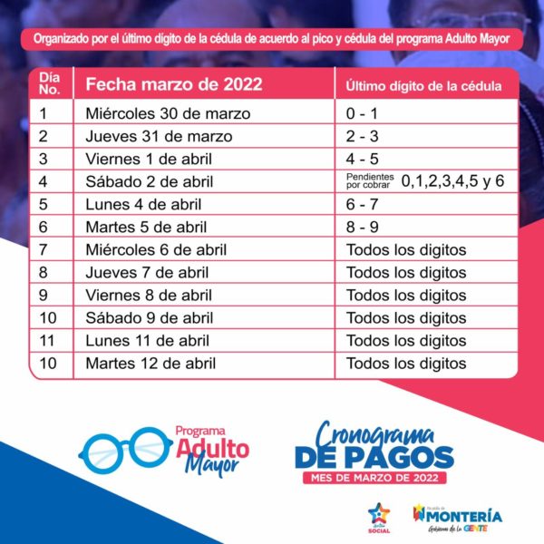 “Desde el Programa Colombia Mayor en Montería, invitamos a todos los beneficiarios a retirar su incentivo económico, es muy importante asistir a los puntos de pago de acuerdo al cronograma establecido, para así evitar aglomeraciones y largas filas para nuestros adultos mayores”. Puntualizó Angélica Montes, Coordinadora del Programa en el municipio.