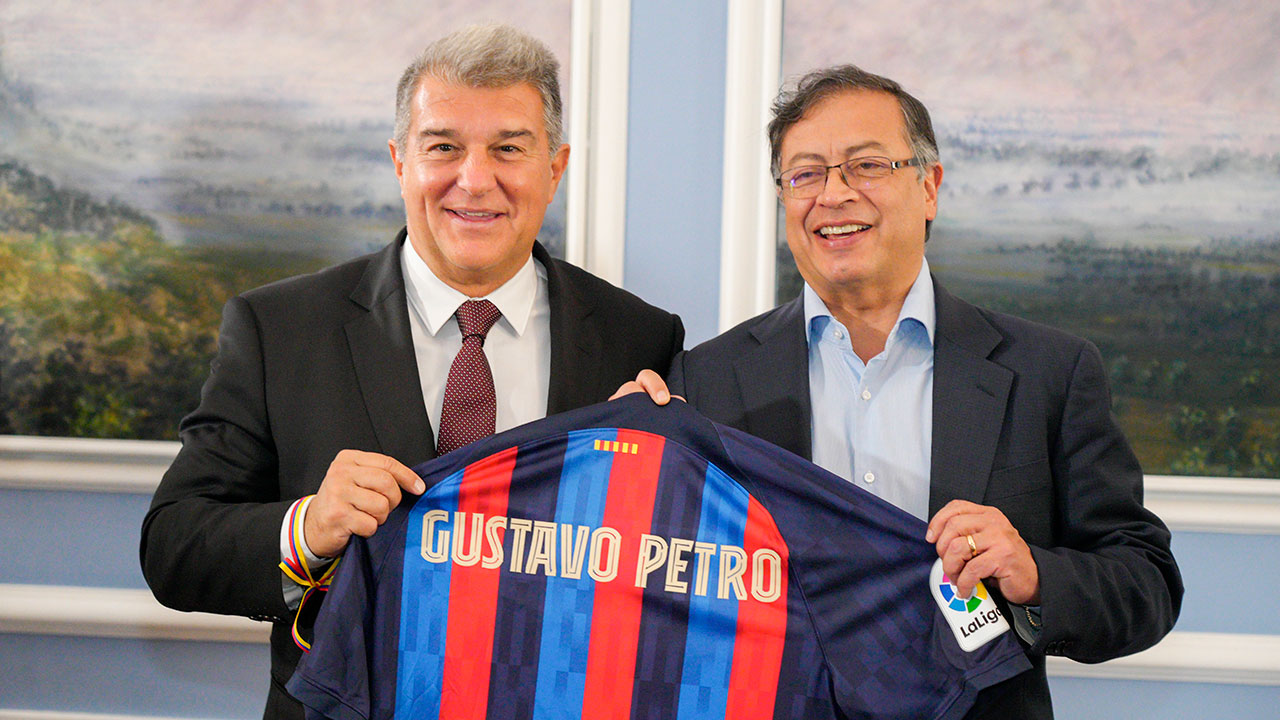 También hizo presencia en un evento en Bogotá en el que confirmó el interés por fichar a Linda Caicedo para el equipo femenino. Y ahora, se lo vio junto a Gustavo Petro, presidente de Colombia que posó con la camiseta del Barça.