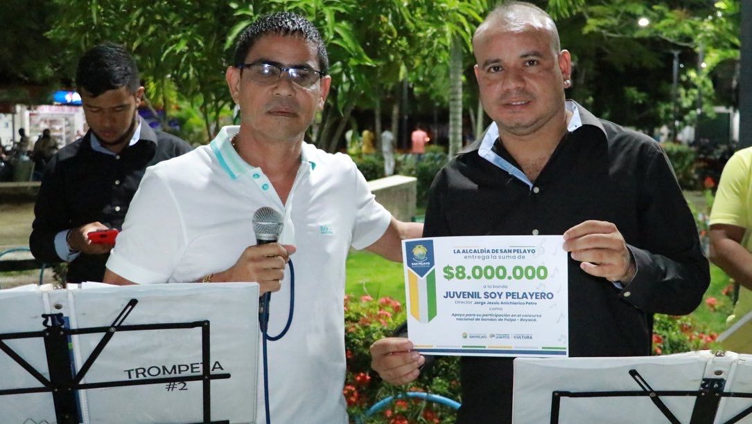 En el marco de la presentación de la Banda Juvenil Soy Pelayero en el parque central Simón Bolívar, el primer mandatario les hizo entrega de un cheque simbólico que garantiza una suma económica de 8 millones de pesos para participar en el concurso Nacional de Bandas Musicales, en Paipa, Boyacá.
