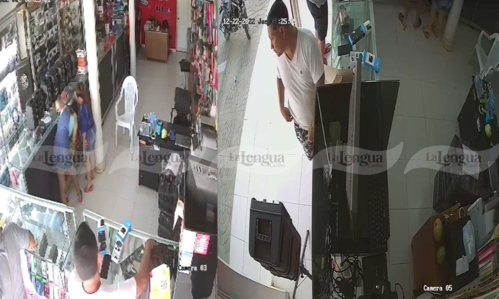 El robó quedó captado en las cámaras de vigilancia de la tienda tecnológica, allí se observa cuando desde la vitrina del local, aprovecha la ocupación de los empleados y toma un celular marca Samsung 50, lo guarda y posteriormente huye del lugar.