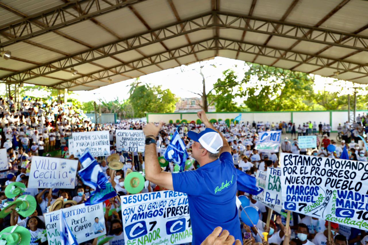 El equipo de los resultados sigue caminando el territorio cordobés. Marcos Daniel Pineda, candidato al Senado y Wadith Manzur Imbett, aspirante a la Cámara, recorrieron la zona rural de Lorica y lideraron una masiva manifestación pública en Momil, donde recibieron el respaldo de miles de simpatizantes.