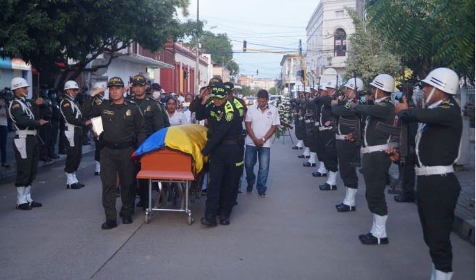 A primera hora de este viernes 22 de julio, el policía Edinson Borja Yánez, fue despedido con honores frente a las instalaciones del comando de la Policía Departamental.