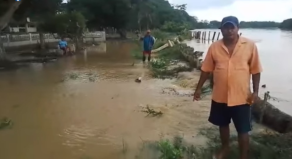 Se prenden las alarmas en Lorica, se filtra agua del Sinú por la boca de Nueva Colombia, corregimiento Cotocá Arriba