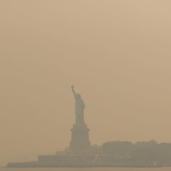 A Southwest airliner approaches LaGuardia Airport in New York, Wednesday, June 7, 2023. The Federal Aviation Administration paused some flights bound for LaGuardia Airport and slowed planes to Newark Liberty and Philadelphia because the smoke from wildfires in Canada was limiting visibility. It also contributed to delayed arrivals at Dulles International Airport outside Washington. (AP Photo/David R. Martin)The Statue of Liberty, covered in a haze-filled sky, is photographed from the Staten Island Ferry, Wednesday, June 7, 2023, in New York. (AP Photo/Yuki Iwamura)Pedestrians pass the One World Trade Center, center, amidst a smokey haze from wildfires in Canada, Wednesday, June 7, 2023, in New York. (AP Photo/Julie Jacobson)CORRECTS DATELINE TO FORT LEE, NOT ENGLEWOOD CLIFFS – A Man talks on his phone as he looks through the haze at the George Washington Bridge from Fort Lee, N.J., Wednesday, June 7, 2023. Intense Canadian wildfires are blanketing the northeastern U.S. in a dystopian haze, turning the air acrid, the sky yellowish gray and prompting warnings for vulnerable populations to stay inside. (AP Photo/Seth Wenig)Traffic moves along Wednesday, June 7, 2023, in New York, amidst smokey haze from wildfires in Canada. Smoke from Canadian wildfires poured into the U.S. East Coast and Midwest on Wednesday, covering the capitals of both nations in an unhealthy haze, holding up flights at major airports and prompting people to fish out pandemic-era face masks. (AP Photo/Andy Bao)