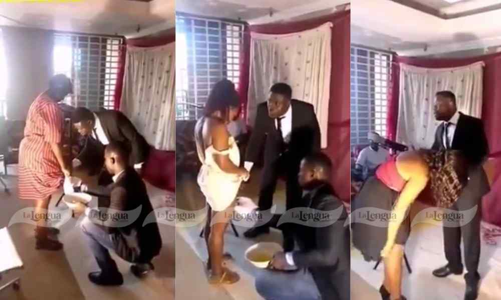 Un pastor cristiano dentro de una iglesia en África, utilizando su autoridad e influencia como predicador convence a mujeres para rasurar su vagina, en público, delante de todas las demás personas congregadas en el santo templo.