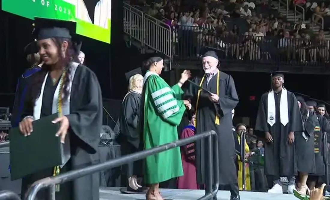Un hombre de 72 años, se graduó de la universidad y dedicó su título a su madre de 99 años, quien estuvo presente en la ceremonia el pasado 11 de mayo.