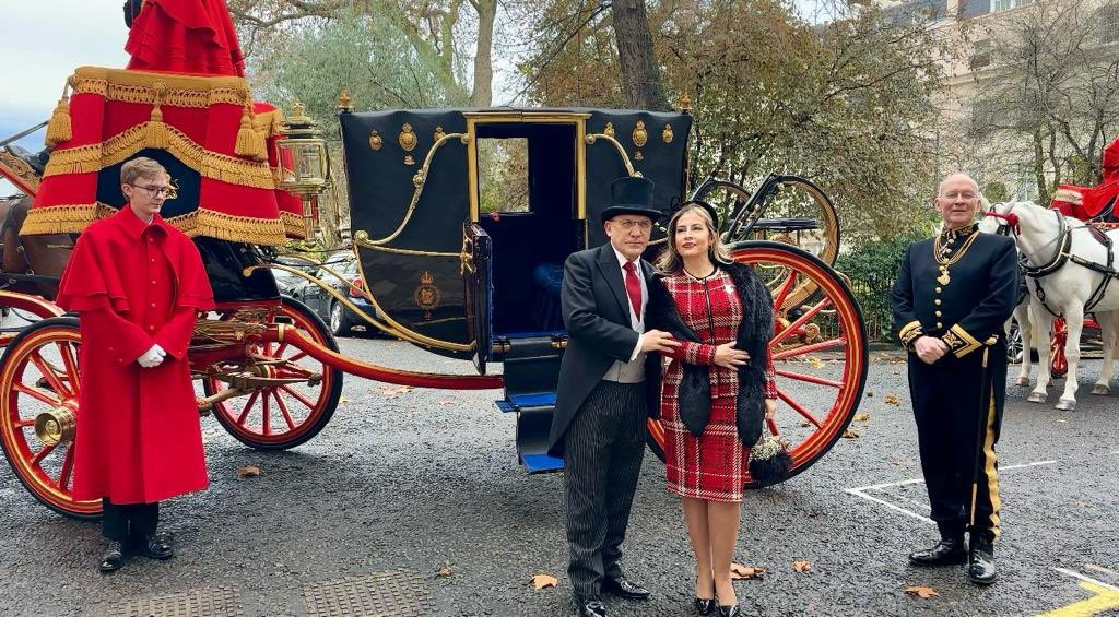 El embajador de Colombia en Reino Unido, Roy Barreras, acompañado de su esposa Claudia González Amortegui, se presentaron en el Palacio de Buckingham para el encuentro con el rey Carlos III.