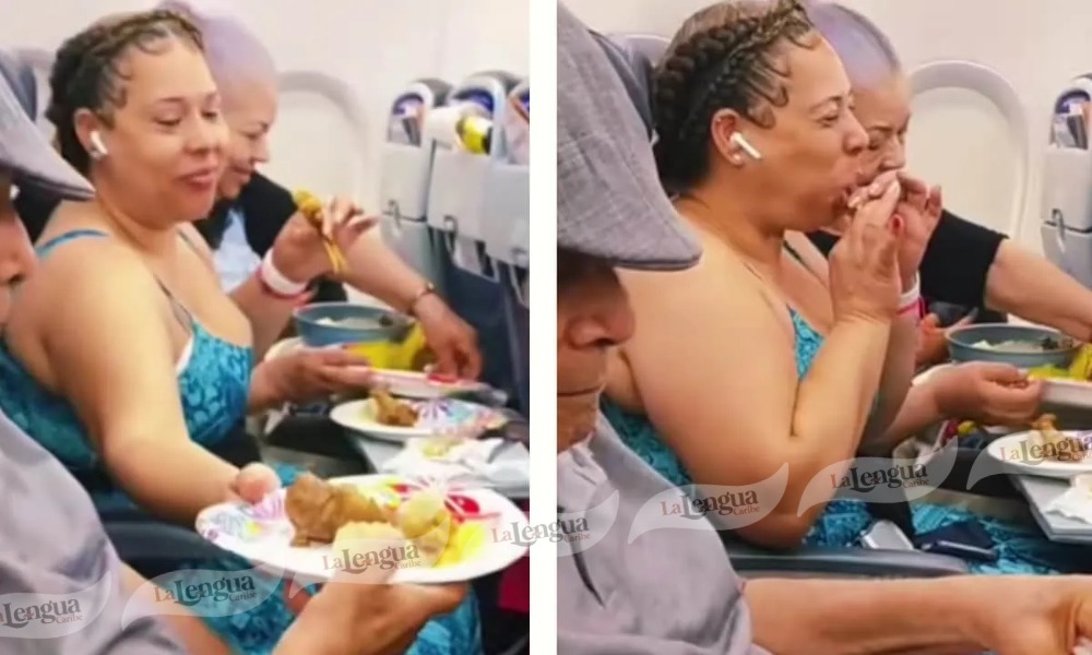 En la cuenta de TikTok de la usuaria (@analisiareyes), aparece un video que se ha hecho viral en redes sociales, donde se puede ver a una familia que se está sirviendo y comiendo un pollo frito con yuca y papa, todo esto en pleno vuelo de avión con los demás pasajeros alrededor.