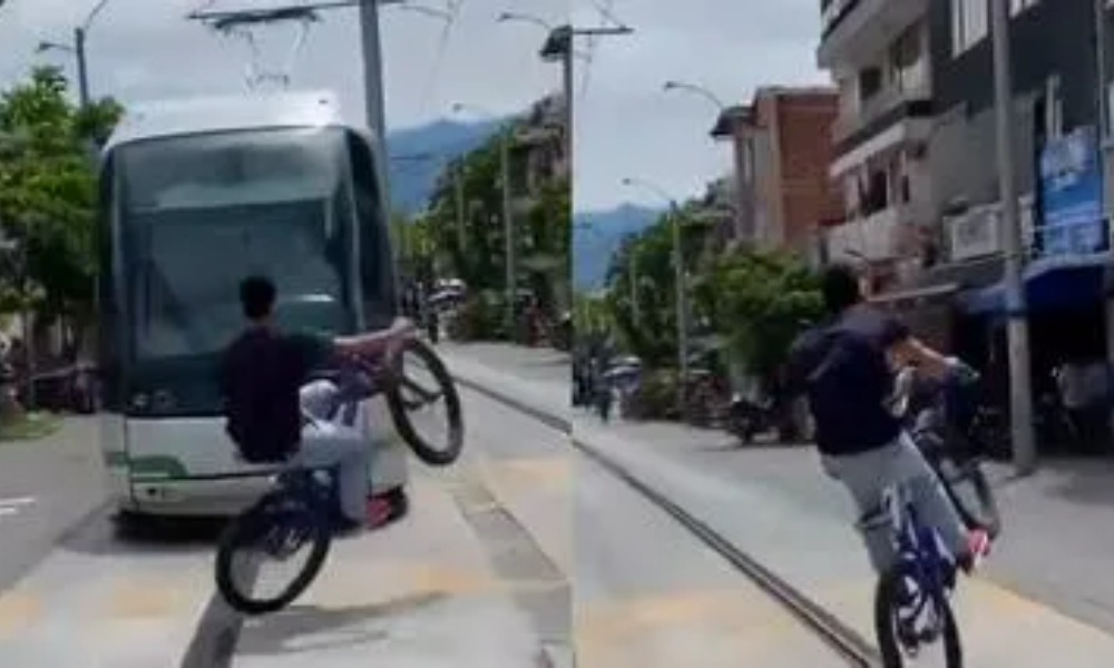 En el clip se alcanza a escuchar que el conductor del tranvía hace una alerta pitando para que el joven no se acercara más. Por fortuna, el hecho no terminó en tragedia y el joven pudo mantener el control de la bicicleta durante la peligrosa maniobra.