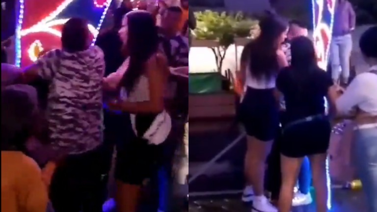 En el sitio muchas personas disfrutaban de una noche tranquila en compañía de sus familias y amigos, sin embargo, de repente los sorprendió una particular escena protagonizada por dos mujeres y un hombre.