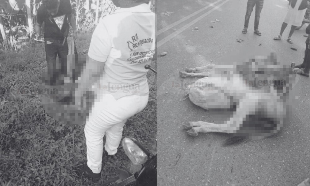 Sin embargo, una vez ingresó hasta la carretera, de repente el animal colisionó fuertemente contra una motocicleta, provocando con esto un fuerte impacto tanto para las dos personas, como para el burro que de inmediato perdió la vida.
