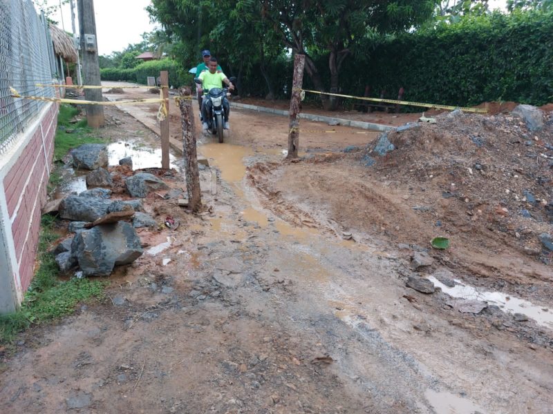 A esta obra inconclusa se le suman las fuertes lluvias que se han registrado en el departamento, haciendo que los 600 metros que faltan por pavimentar, se conviertan en una vía de barro.