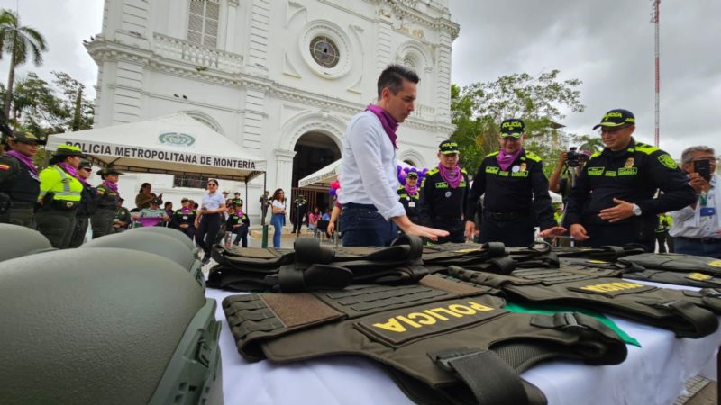 En medio del lanzamiento el dirigente de los monterianos también hizo efectiva la entrega de chalecos y cascos que fortalecerán las actividades de inteligencia e investigación que adelantarán los uniformados en aras de contrarrestar estas expresiones de violencia, así como también, las capacidades y seguridad de los hombres y mujeres que patrullan en barrios y zonas corregimentales, para los cuales fueron invertidos recursos por el orden de los $308 millones.