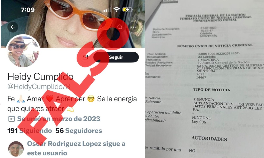 A la comunidad se le hace el llamado para no caer en engaños y mentiras y a reportar y bloquear la cuenta de X (antiguo Twitter) @HeidyCumplido78.