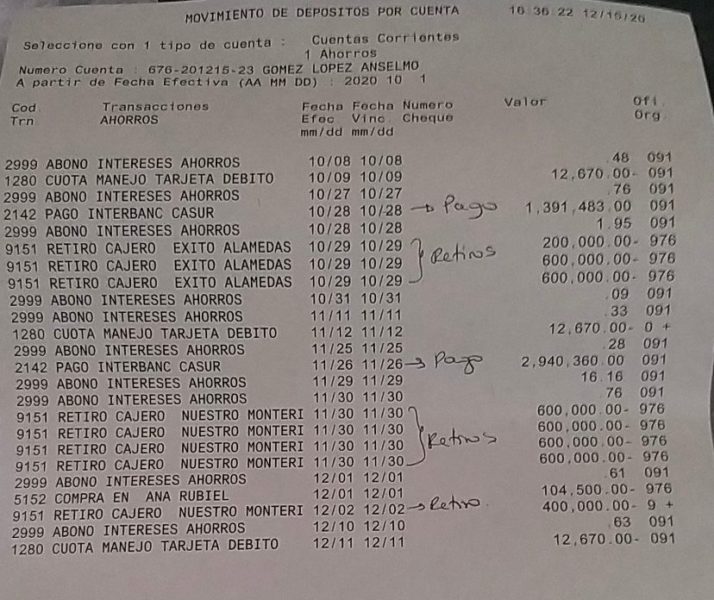 Además sabía la clave, puesto que durante pandemia se inscribió como colaborador del señor Anselmo para retirarle su dinero ya que él era pensionado de la Policía.