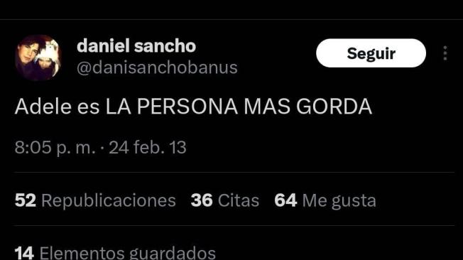 Finalmente, hay otro trino donde habla de la cantante Adele, en el que se refiere a ella como la personas más gorda.