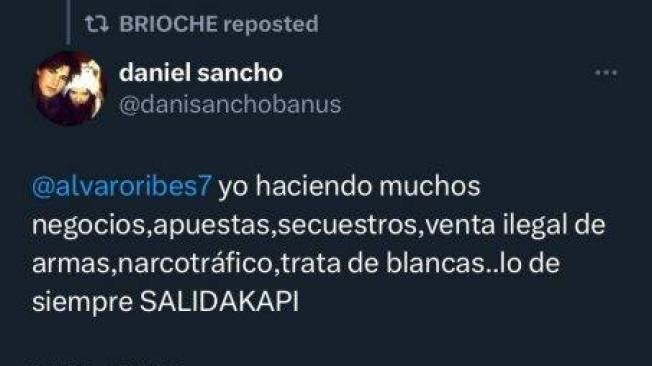 En otro de sus antiguos trinos da una respuesta a otro hombre y habla sobre lo que hará en las vacaciones, «Yo haciendo muchos negocios, apuestas, secuestros, venta ilegal de armas, narcotráfico, trata de blancas, lo de siempre».