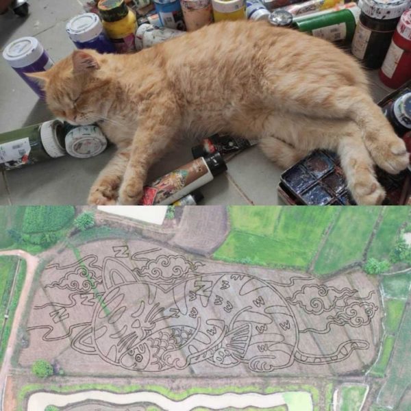 Con estas obras hechas con arroz, el granjero busca atraer a los amantes de los gatos y generar otro atractivo turístico para que más personas visiten su provincia.