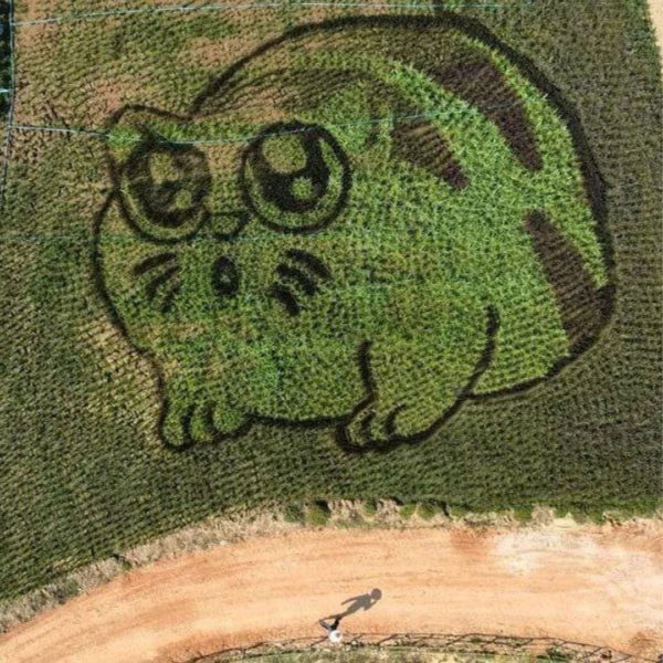 En redes sociales se viralizaron varias imágenes de dibujos gigantes que fueron hechos con la hierba en campos de arroz.