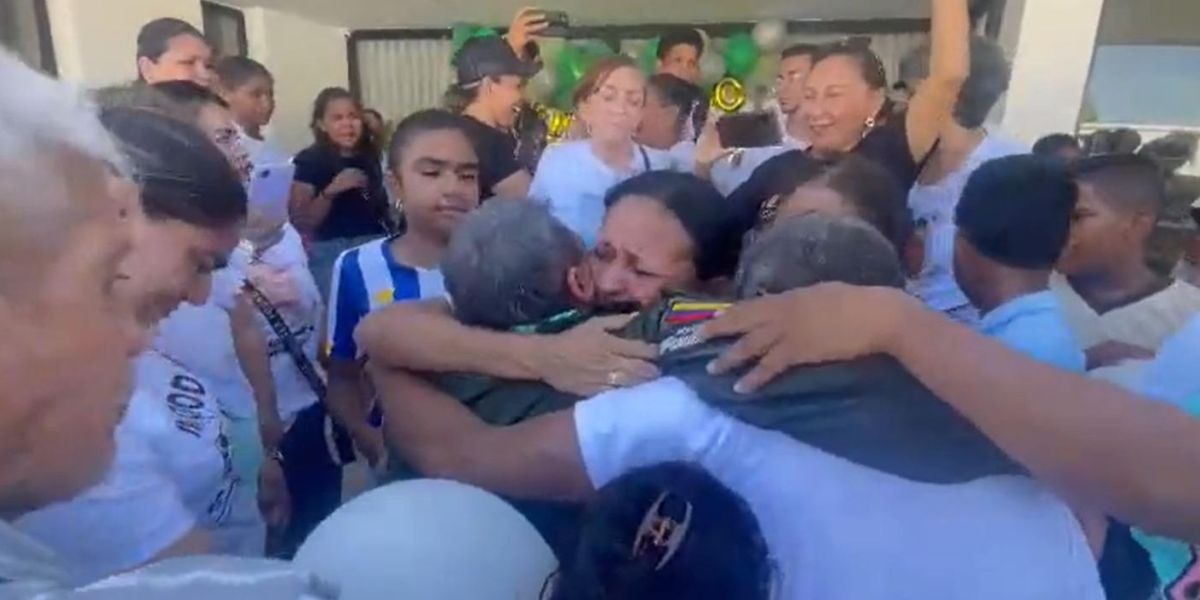 El padre del futbolista Luis Díaz, el señor Luis Manuel Díaz, fue recibido en su casa junto a sus familiares, entre lágrimas, abrazos y alegría, después de una espera de 12 días.