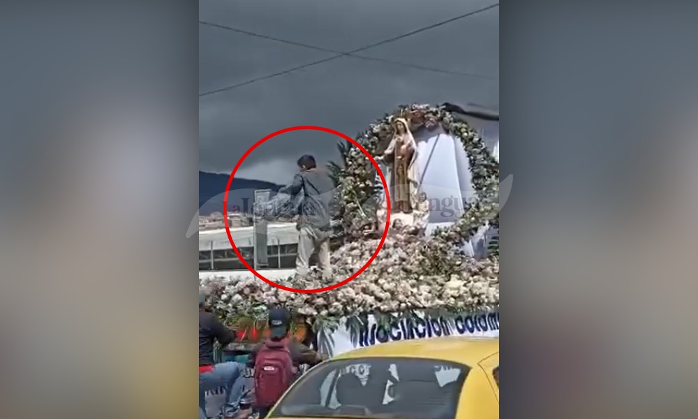 El día santo de la Virgen del Carmen se vio empañado por un hombre, que al parecer es habitante de calle, quien se subió a la carrosa donde estaba la imagen de la virgen con el niño Jesús para pegarle a ambas imágenes y destrozar la decoración que llevaba.