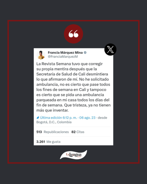 La Revista Semana publicó una supuesta exigencia solicitada por la vicepresidenta Francia Márquez, donde al parecer pedía tener a su servicio una ambulancia de alta complejidad, de forma permanente para atenderla a ella y su familia en Dapa, Valle del Cauca.