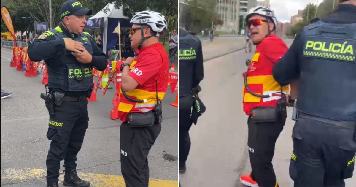 La grabación muestra como uno de los coordinadores de los guardianes de la ciclovía les reclama a los uniformados por andar en esa vía a altas velocidades, ya que podía ser peligroso para los peatones y los ciclistas.
