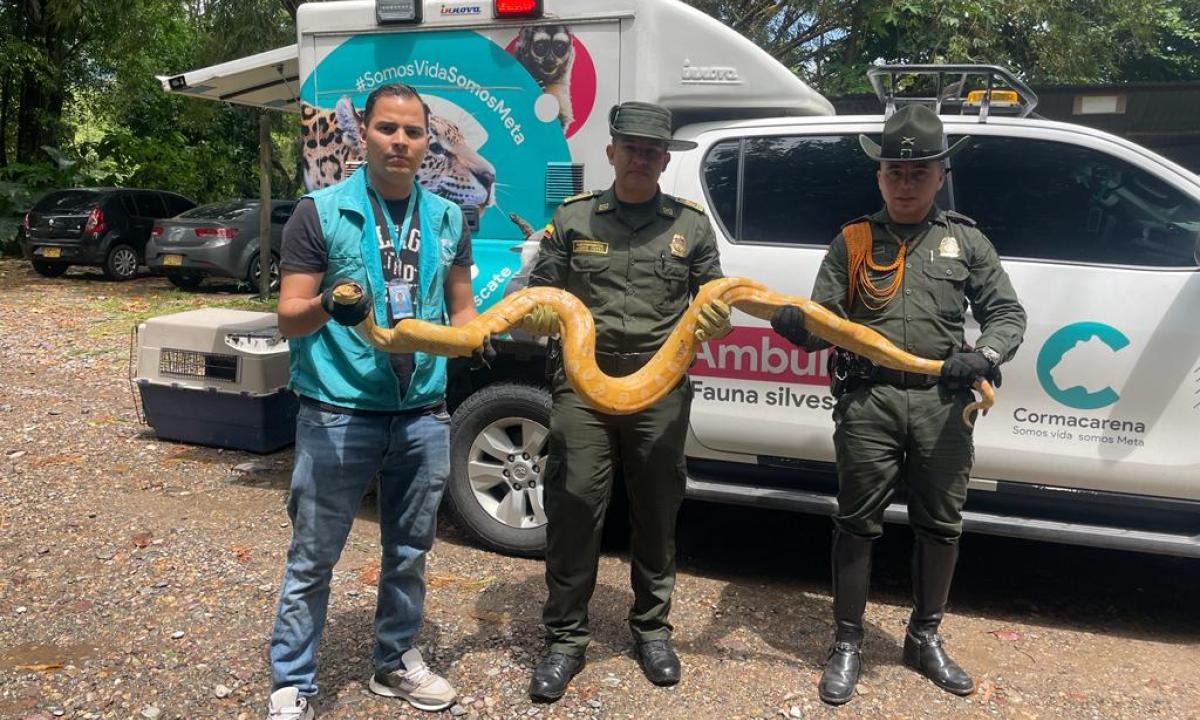 El llamado de la comunidad y la oportuna atención del equipo de veterinarios de la corporación ambiental Cormacarena, logró el rescate de esta serpiente nunca antes vista en Colombia, se trata de la anaconda verde albina, una especie silvestre que se ha visto en cautiverio, pero no en su hábitat natural en el país.