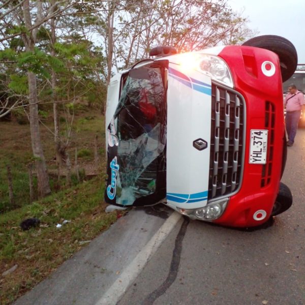 En el incidente vial resultó involucrada una buseta de servicio público adscrita a la empresa Sotracor, que terminó volcada sobre el pavimento.