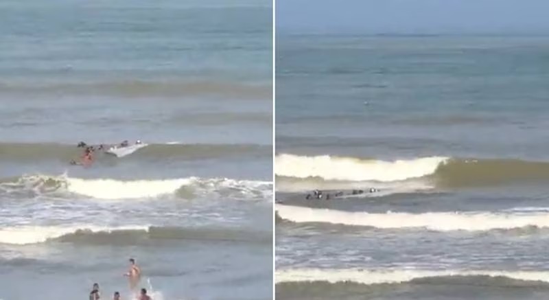 La lancha que segundos después de partir presentó una falla en el motor terminó volcada producto de las olas.