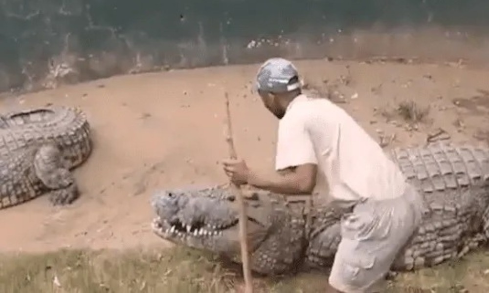 Según se observa en el video que circula por las redes sociales, el hecho lo ocasionó el hombre tras provocar al reptil con un trozo de madera.