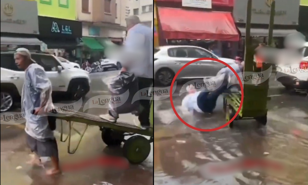 Sin embargo, nada salió como lo planeado porque en medio del recorrido el hombre que se encargaba del transporte, tropezó la “carretilla” con un hueco de la calle y su pasajero cayó al agua al estilo de Condorito.