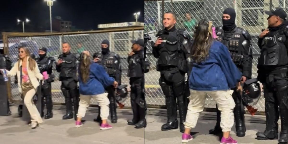 Por medio de un video de TikTok, se pudo observar que un par de jóvenes que estaban emocionadas por escuchar a la artista desde las afueras del Estadio Nemesio Camacho El Campín, disfrutaron sus canciones e incluso le bailaron a unos uniformados.