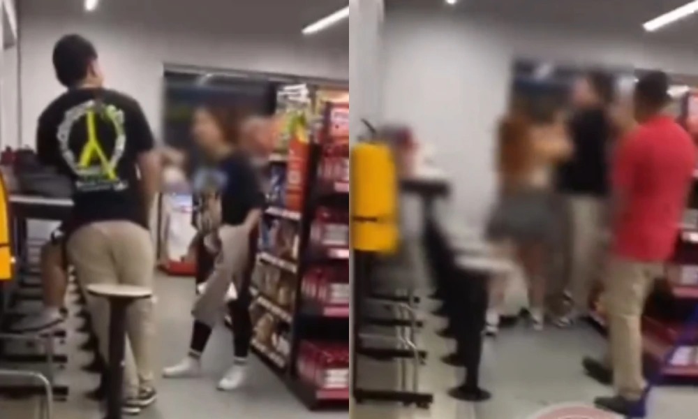 Según la cuenta @marimondieu de la red social X, quien difundió el incidente, el suceso tuvo lugar al interior de un OXXO, en donde una joven sorprendió a Sergio Andrés, su novio, con otra mujer.