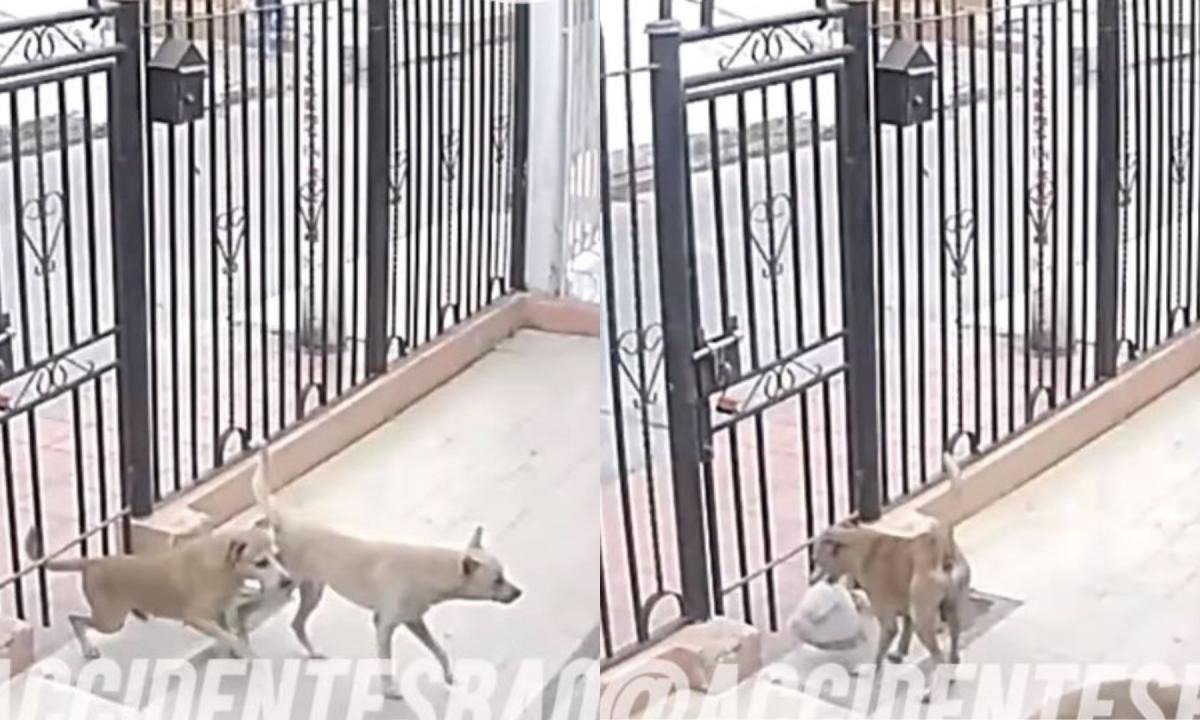 El clip muestra a los perros mirar al interior de la vivienda y posteriormente uno de ellos agarró una de las bolsas, al parecer con carne, con su boca mientras que su ‘cómplice’ lo escoltaba. Ambos salieron con el producto por una pequeña abertura de la reja que cubre la vivienda.
